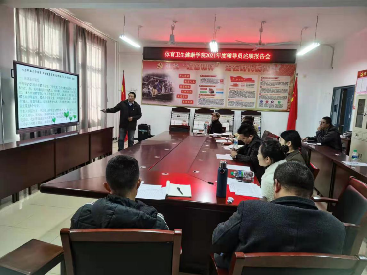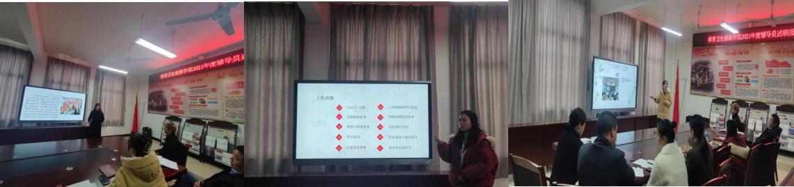 体育/卫生健康学院各位辅导员根据所带班情况分别从党团班级建设工作、学业指导、取得的成绩、工作特色与亮点、工作中的不足等九个方面进行了述职。