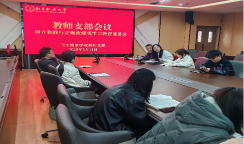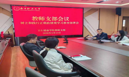 本网讯 卫生健康学院 龚美 报道 为深入贯彻落实校党委和学院党委关于树立和践行正确政绩观学习教育的部署要求,3月11日卫生健康学院教师党支部在学院518会议室召开学习教育部署会。支部13名党员参加会议,会议由党支部书记胡立明同志主持。
