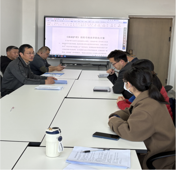 会上,临床护理教研室主任黎普刚首先详细汇报了《基础护理》课程考核改革的整体方案,从改革背景、核心目标、考核内容、实施路径等方面进行了全面阐述,明确了改革的重点和方向。随后,课程组樊隐丽、裴师云等教师结合自身教学实践,围绕考核标准细化、实操流程规范等具体问题作了补充发言,提出了针对性的意见和建议。
